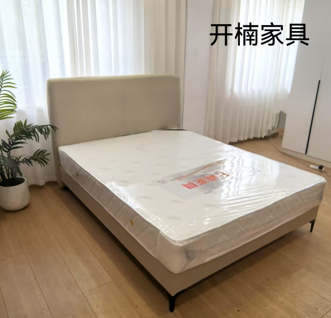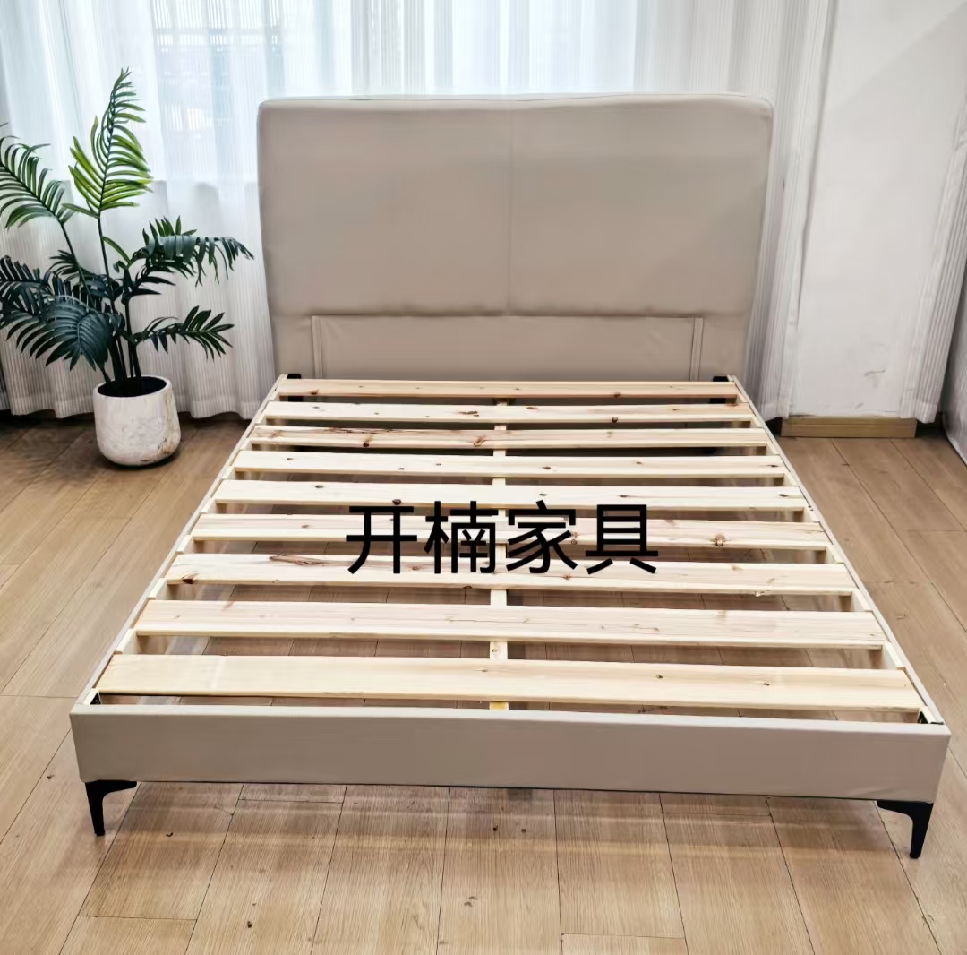 促销T1-15猫抓皮实木床边框架床(浅咖色)